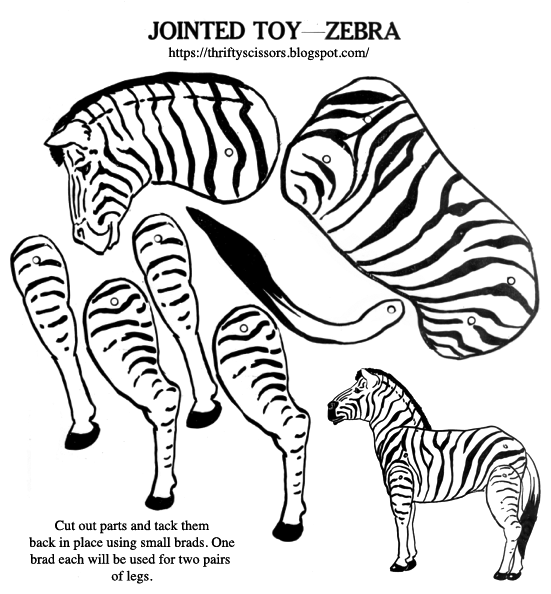 | A paper jointed zebra toy for students to print, cut and assemble. |